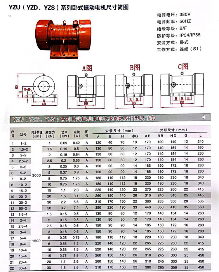 3、據(jù)適用設(shè)備選購,振動(dòng)篩、給料機(jī)和振實(shí)臺等設(shè)備,計(jì)算好電機(jī)振次和雙振幅選擇二級、四級、六級電機(jī)。