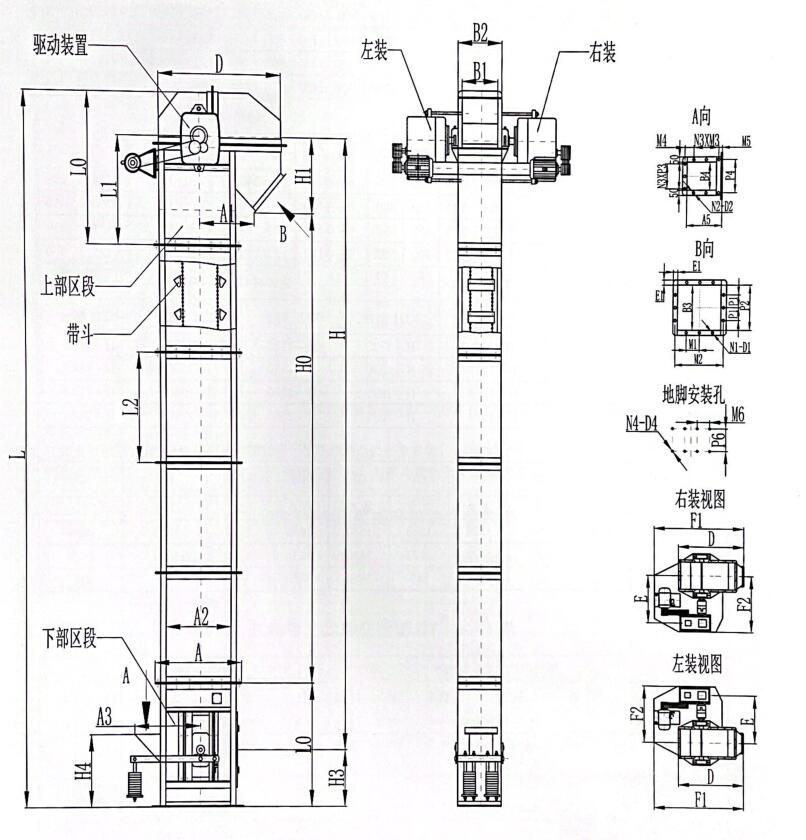 D型斗式提升機外形結構圖